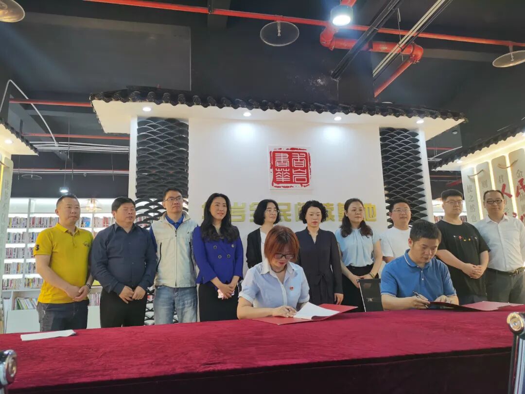 袁锐代表重庆网络作家协会与华岩新城社区签订服务协议,并赠送书籍,共同打造华岩镇全民阅读基地。